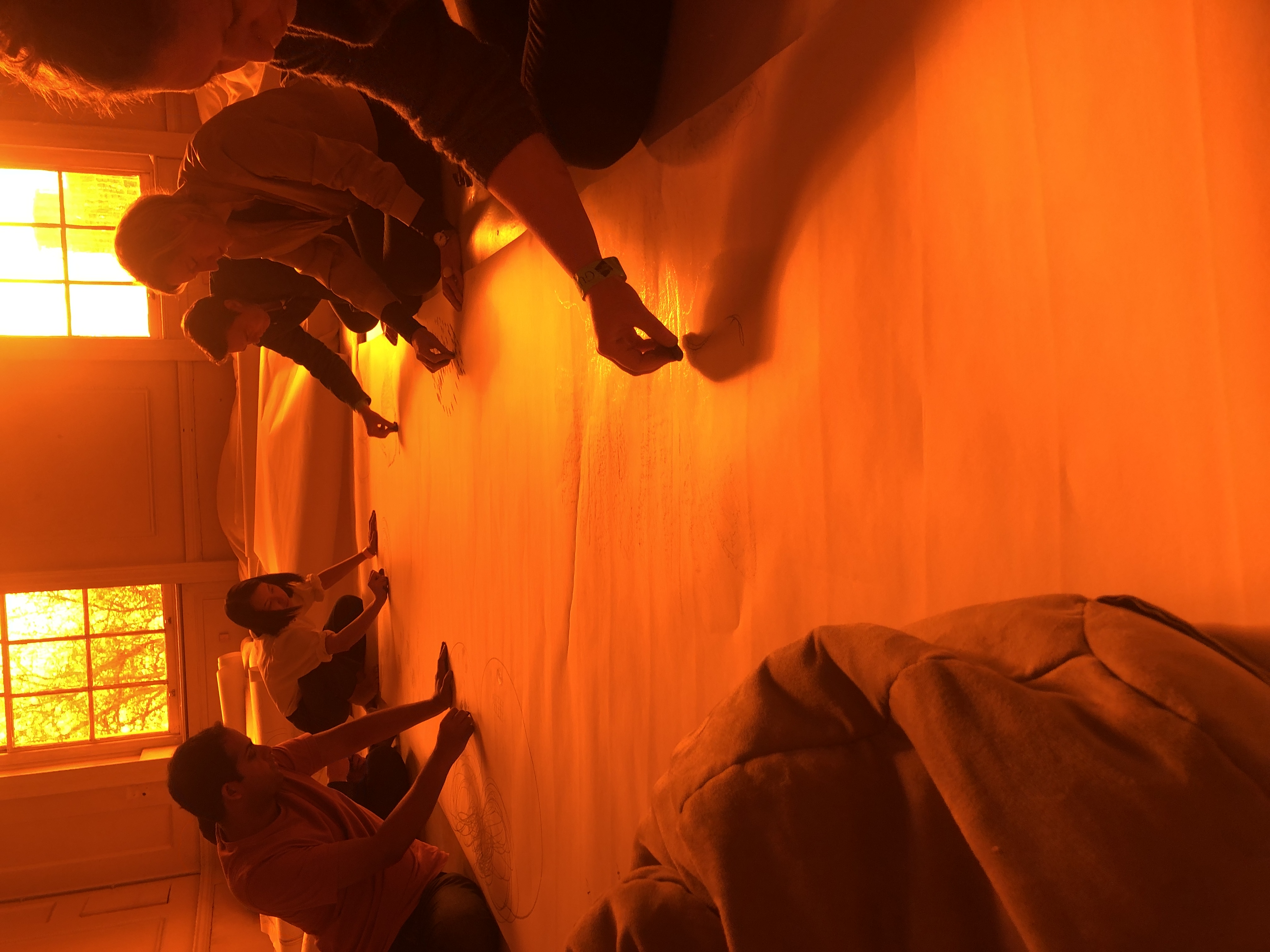 Over the course of three hours, Jayoon provided loose guidance to the participants. The instructions were simple: sit in silence by the paper, no music allowed, observe their bodily presence, let the drawing unfold naturally, and engage with others through silent drawing. It aimed to cultivate an instinctive connection with oneself, others and the surrounding world, allowing these discoveries to emerge through an intuitive creative process.